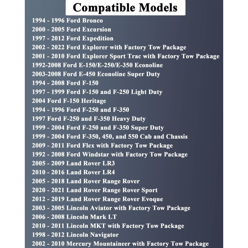 - Brake Control Wiring Harness for Ford: This f150 electrical brake controller adapter fits for 1994-2008 Ford F150, 1994-1996 F250, 1994-1996 F350, 1999-2004 F450, 1999-2004 F550, 1994-1996 Bronco, 2000-2005 Excursion, 1997-2012 Expedition, 2002-2022 Explorer, 2009-2011 Flex, 1992-2008 Windstar, 2005-2009 Land Rover LR3, 2010-2016 LR4, 2005-2018 Range Rover, 2003-2005 Lincoln Aviator, 2006-2008 Mark LT, 2010-2011 MKT, 1998-2012 Navigator,(📢:Please check compatible models on Picture 4.)