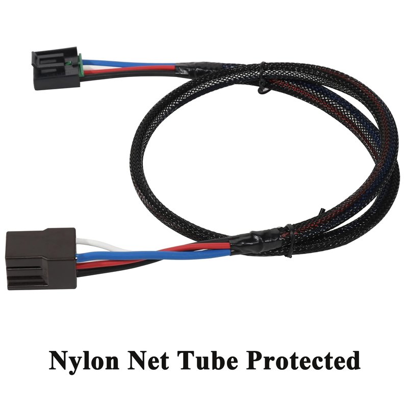 - Durable Construction. This f350 brake controller harness plugs are made from durable ABS plastic and tin-plated copper terminals; 2-Plug Brake Control Wiring Adapter is well protected by a black nylon net tube, ensure long service life
