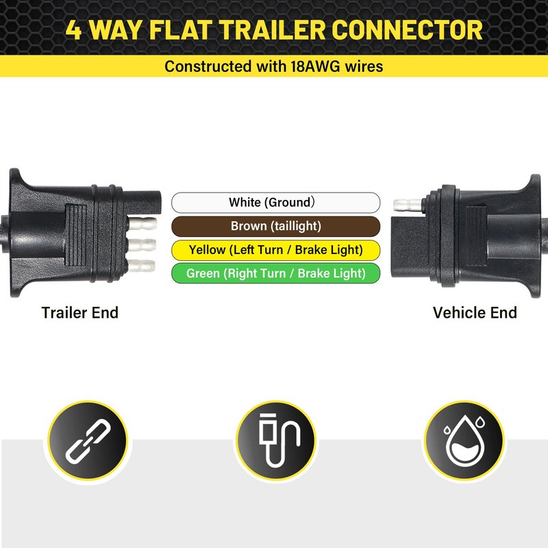 - Easy Plug & Play. This 4 wire trailer lighting extension cable comes ready to plug into the existing 4 pole plug on your vehicle and trailer, No Splicing Required! 4 way connectors features tabs on the sides for a better grip when plugging and unplugging