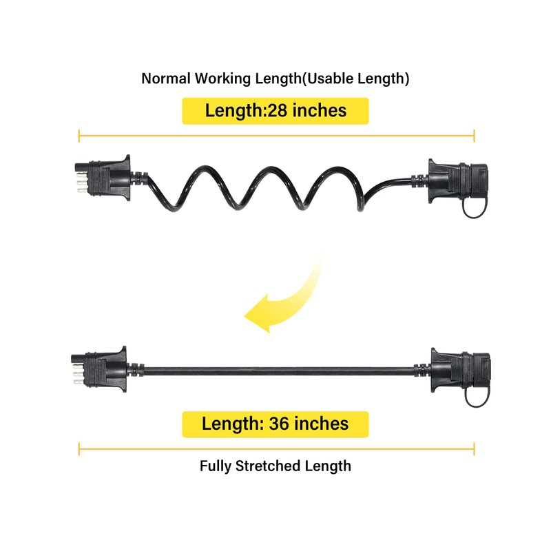 Oyviny 4 Way Flat Trailer Extension Coiled Cable 3 Feet 4 Pin Male and Female Wiring Harness Adapter 36" Stretchable Coiled Extension Wiring Cable with Dust Cover Plug & Play Connector 18 Guage