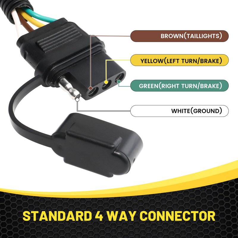 - Standard 4 Way Connector. USCAR 7 pin tailgate light wiring harness ties your trailer's electrical system into the vehicle's Brake Light, Turn Signal Light and Taillights. 4-pin trailer wiring is widely used in most trailers, adding versatile towing options.