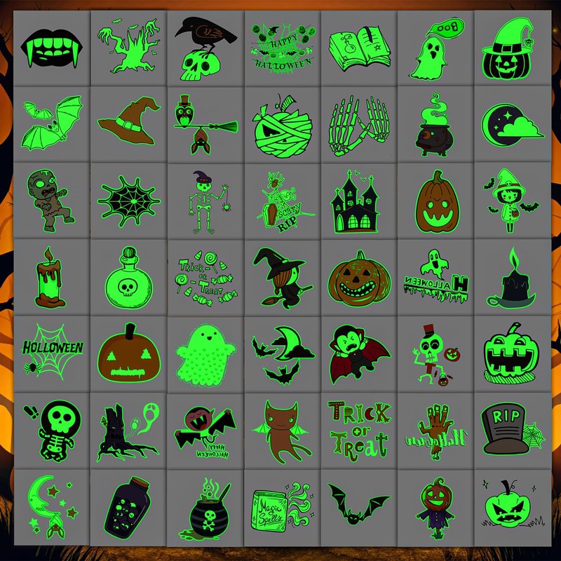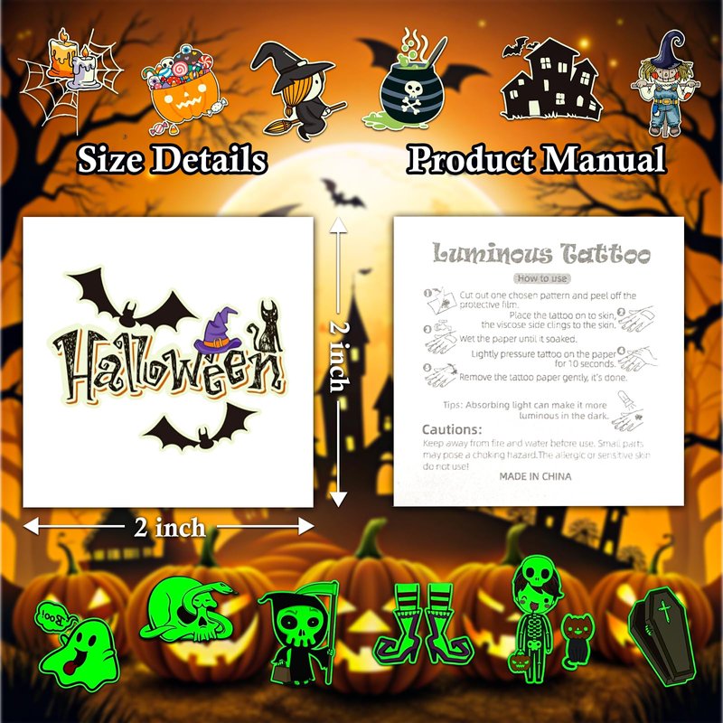 Glow Halloween Party Supplies:Light up your Halloween with these enchanting glow-in-the-dark tattoos, designed to bring smiles to both boys and girls. Whether you're dancing at a lively party or enjoying a spooky night under the stars, these luminous tattoos will make sure you shine brightly among the crowd!