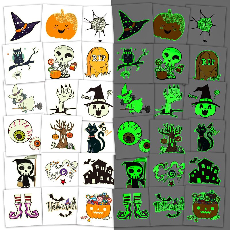 - 🪦Glow Halloween Party Supplies:Light up your Halloween with these enchanting glow-in-the-dark tattoos, designed to bring smiles to both boys and girls. Whether you're dancing at a lively party or enjoying a spooky night under the stars, these luminous tattoos will make sure you shine brightly among the crowd!