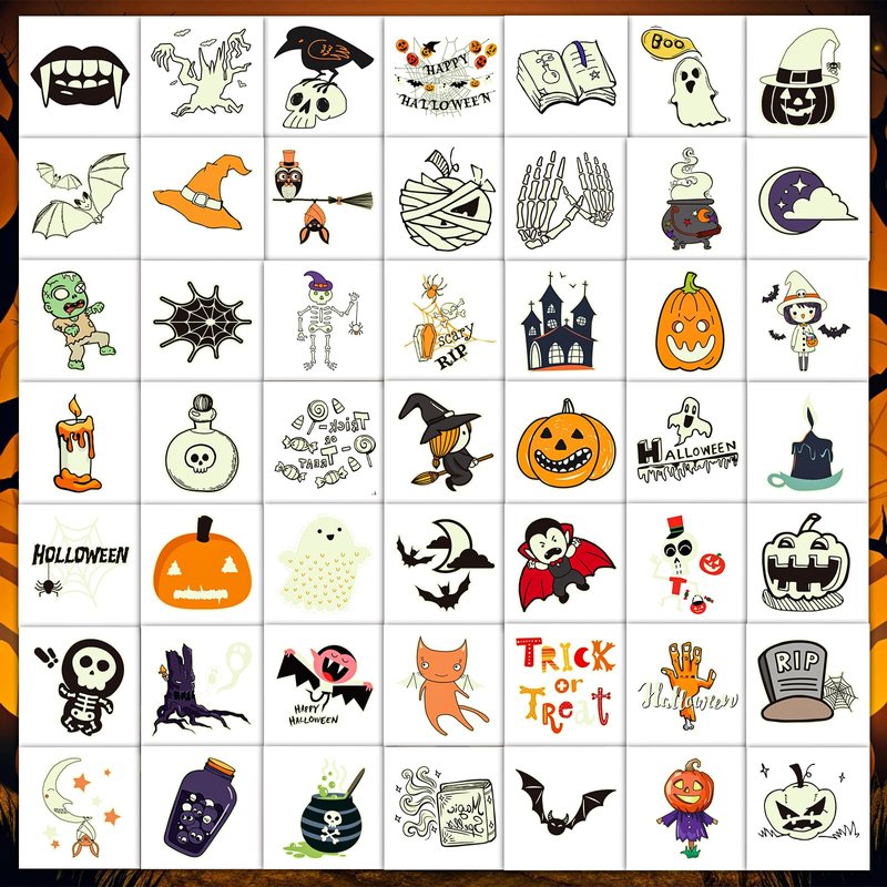 - 🎃Glow-in-the-Dark Halloween Tattoos for Kids: This set includes 112 large Halloween tattoo stickers, each measuring 2 inches by 2 inches. Featuring whimsical Halloween designs such as cheerful pumpkins,playful ghosts, mischievous witches, and quirky skeletons, these temporary tattoos are perfect for adding a touch of magic to any celebration!