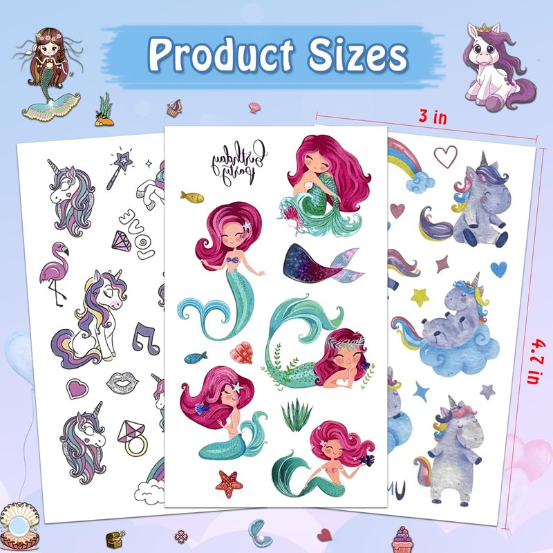 Ozepao 480 Pieces Unicorn & Mermaid Temporary Tattoos for Kids Girls Party Favors Birthday Decorations & Supplies