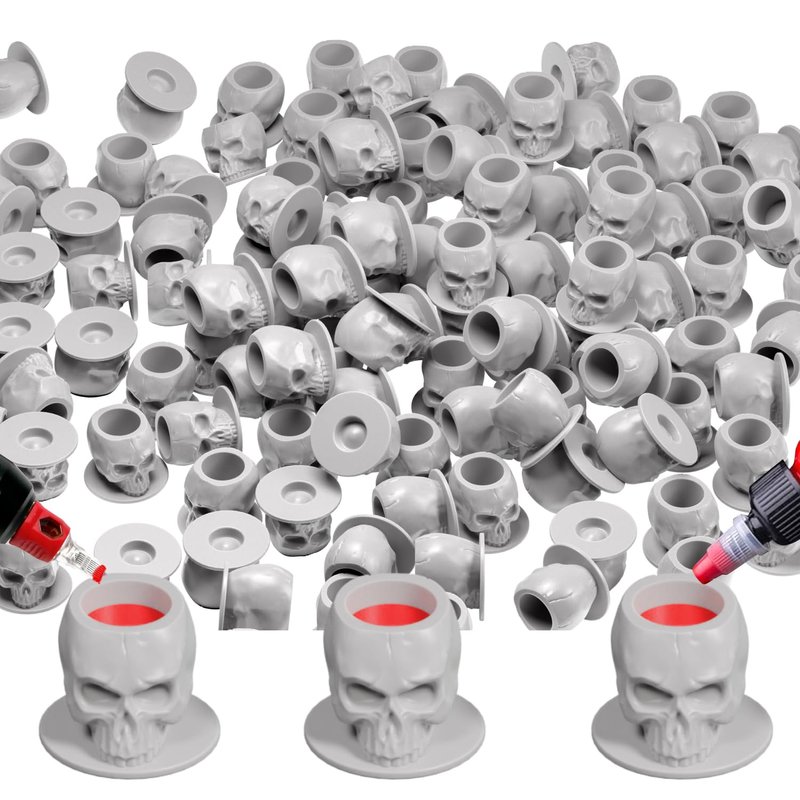 - Unique design - Skull shaped tattoo ink caps made of silicone material,Tattoo ink caps are unique and stylish containers designed for holding tattoo ink during the tattooing process.