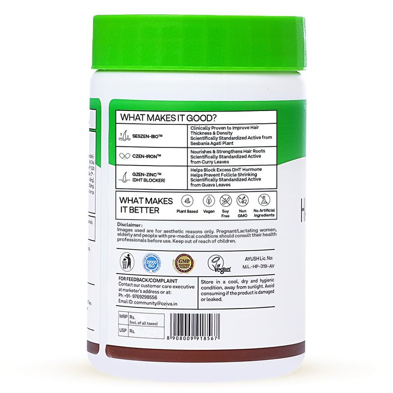 - Hair Vitamins for Hair Growth: OZiva Plant Based Hair Vitamins help promote hair growth and nourishment, supporting stronger hair, with the goodness of Vitamin A, C, D, B-complex, Iron, Zinc, Omega-3, Vitamin E for hair health, and many other vitamins and minerals, very well-known for their role in hair health.