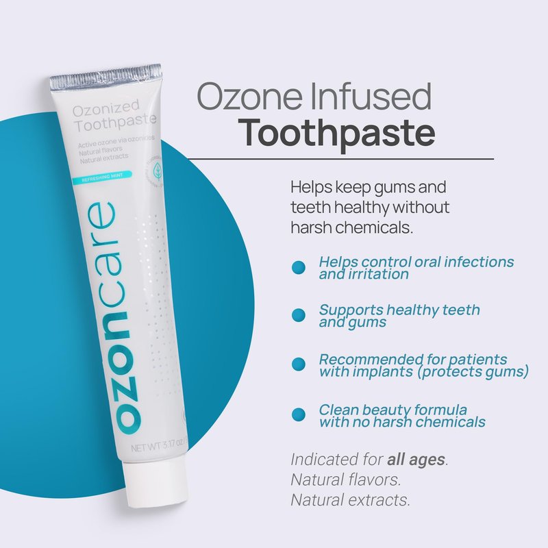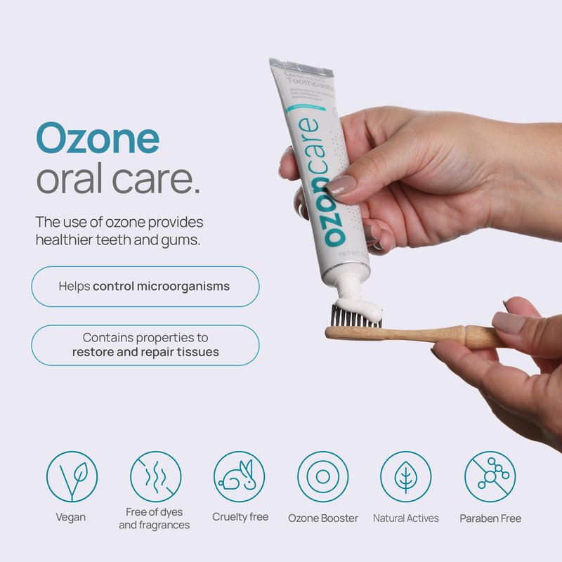 - 【GET THE BENEFITS OF OZONE TREATMENT】Ozoncare products are infused with ozone oil. The use of ozone in our toothpaste helps protect teeth’s enamel. As a result, the higher the amount of collagen, the better for your oral health and for bright, strong teeth. Additionally, since ozone is a biomolecule, our bodies utilize it to sustain biological activities.