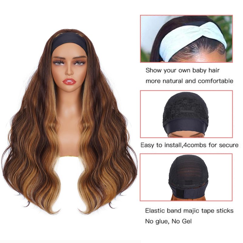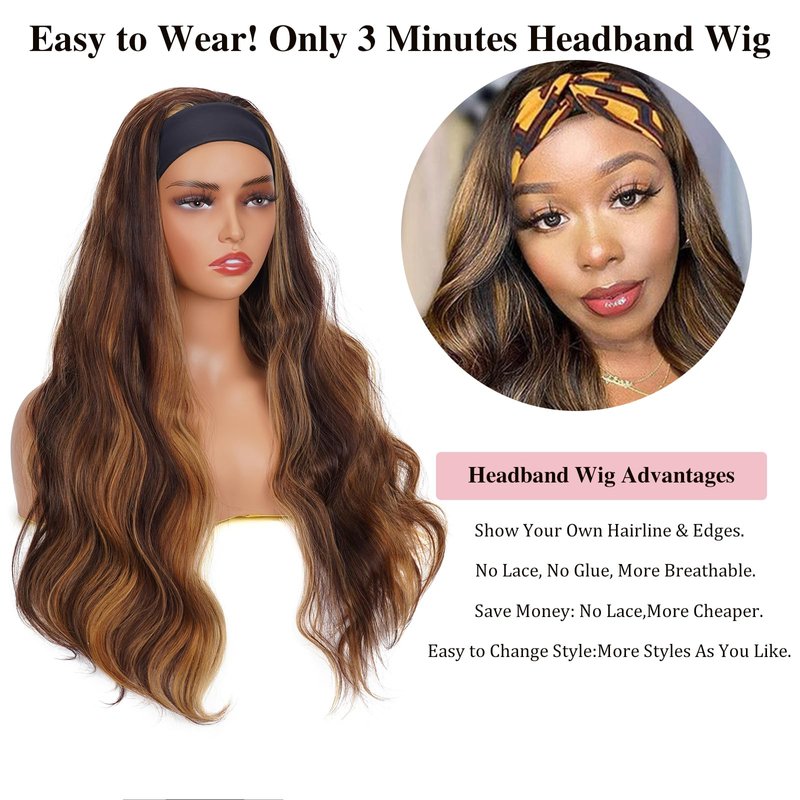 P4/27 Highlight Headband Wig Human Hair Body Wave 16 Inches Human Hair Headband wig None Lace Front Wigs Human Hair Wig for Black Women Wear and Go Wig 150% Density wig(P4/27,BD,16Inch)
