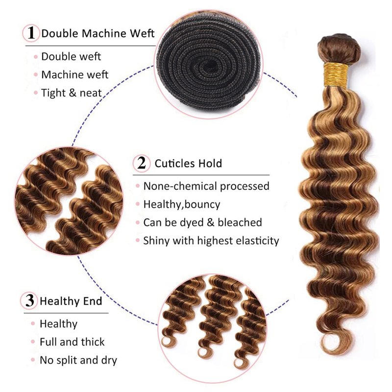 - Deep Wave Human Hair Bundles Package: 3 Bundles Human Hair, Color P4/27 Human Hair Bundles. Usually It Is Enough For Full Head. Smooth And Silky, It’s Like Your Own Hair.