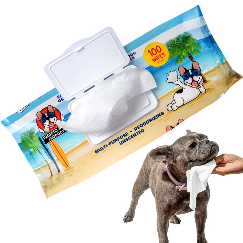 Pacific Pups Dog Wipes for Dogs - Grooming dog wipes for paws and butt: Dive into a world where luxury meets compassion. Introducing the ultimate grooming solution for the modern pet parent - Pacific Pups Dog Wipes. Crafted with precision and love, these wipes are the answer to every pet owner's dream. Why Choose Pacific Pups? Every swipe of our dog wipes for paws and butt delivers a refreshing cleanse, leaving your furry friend feeling pampered and adored. Infused with gentle ingredients, these wipes are gentle on the skin but tough on dirt. Whether it's a quick paw clean after a muddy walk or a full-body refresh, our wipes have got you covered. Our unscented dog wipes not only combat pet odors but leaves your fur baby smelling divine. But that's not all! Our dog bath wipes Pack of 100 for paws and butt are generously sized, ensuring a comprehensive clean with every use. Support a Noble Cause: With every purchase, you're not just ensuring a clean pet; you're supporting a cause close to our hearts. A significant portion of our profits goes directly to pacific pups rescue, making every wipe a step towards a better world for our furry friends. Safe & Reliable: Our commitment to the planet is as strong as our commitment to your pet. Crafted with care, these dog wipes for paws and butt are the epitome of responsible luxury. For the Modern Pet Parent: We understand the challenges of today's fast-paced world. That's why our dog wipes for paws and butt come in a travel-friendly pack, ensuring your pet stays clean, no matter where you go. Join the Pacific Pups Revolution: By choosing Pacific Pups, you're not just getting the best dog wipes for paws and butt; you're joining a community of pet lovers dedicated to making a difference. So, why wait? Dive into a world of cleanliness, compassion, and care with Pacific Pups Dog Wipes for Dogs - Grooming dog wipes for paws and butt.