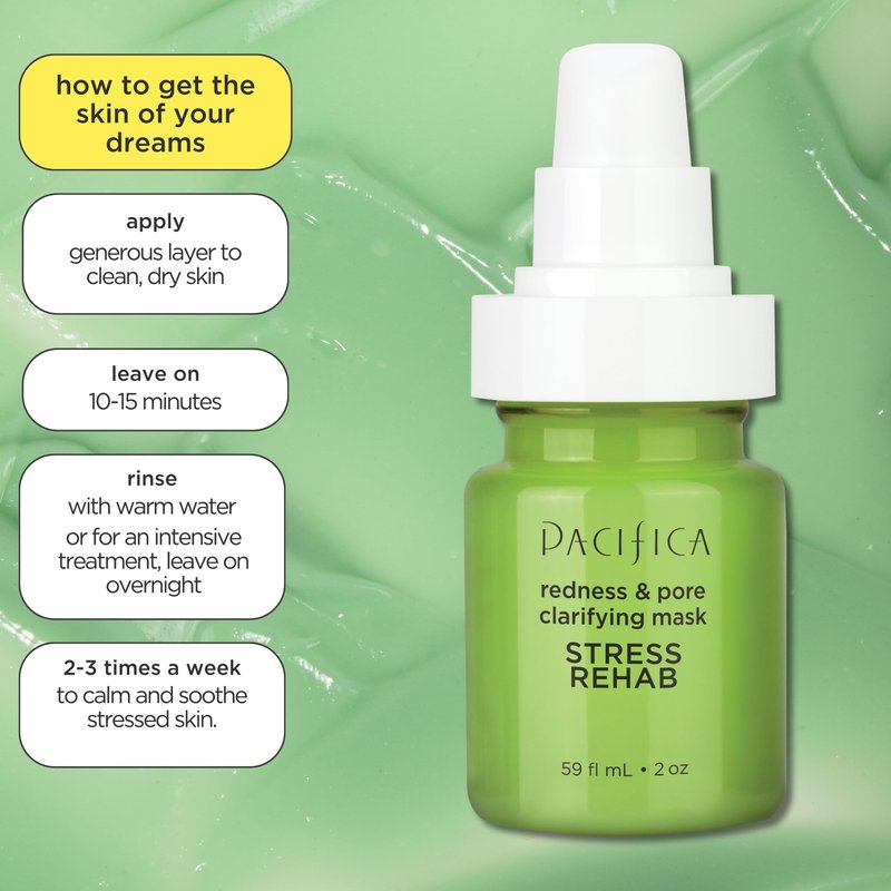 Pacifica Beauty Stress Rehab Redness and Pore Clarifying Mask, Skincare, Niacinamide, Zinc, Caffeine, Matcha, Pore Minimizer, Reduce Redness, For Oily and Combination Skin, Vegan, 2 fl oz (1 Count)