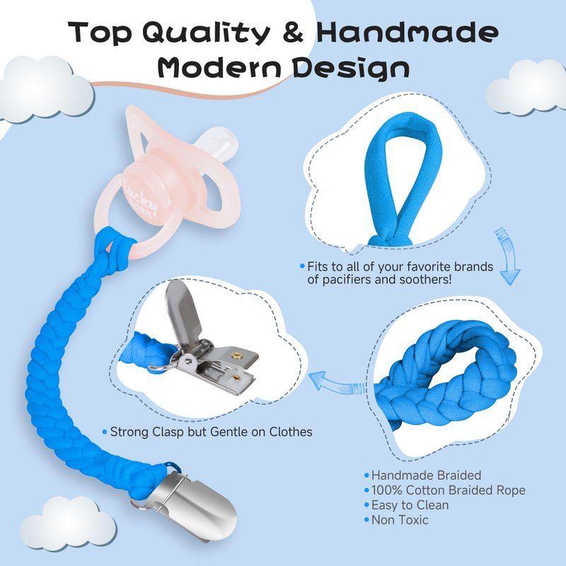 Pacifier Clip for Boys and Girls 6 Pack Baby Pacifier Holder Leash 100% Handmade Braided Fits All Pacifiers & Teething Toys Modern Unisex Baby Gift