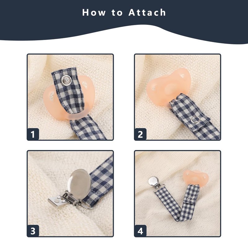 - Universal Fit:The webbing pacifier holder can be attached to any brand of pacifier and teether toy. Keep your baby's pacifier and silicon clip within easy reach and fall off dirty floors or get lost.