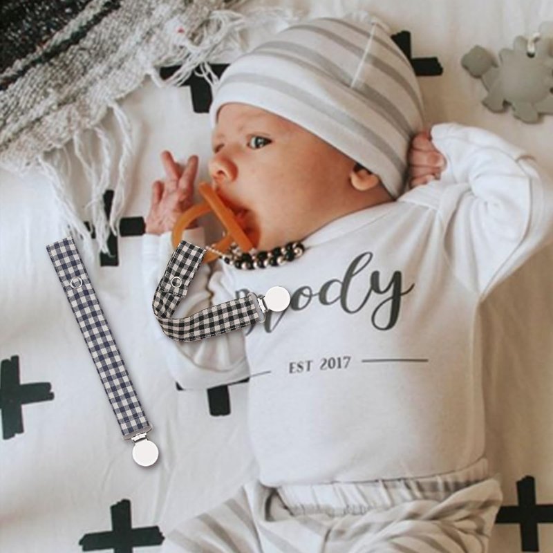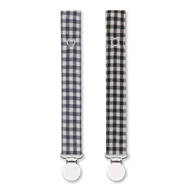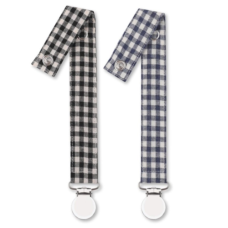 Pacifier Clip Leash Soothie Holder Unisex Plaid Button for boy (2 Pack)
