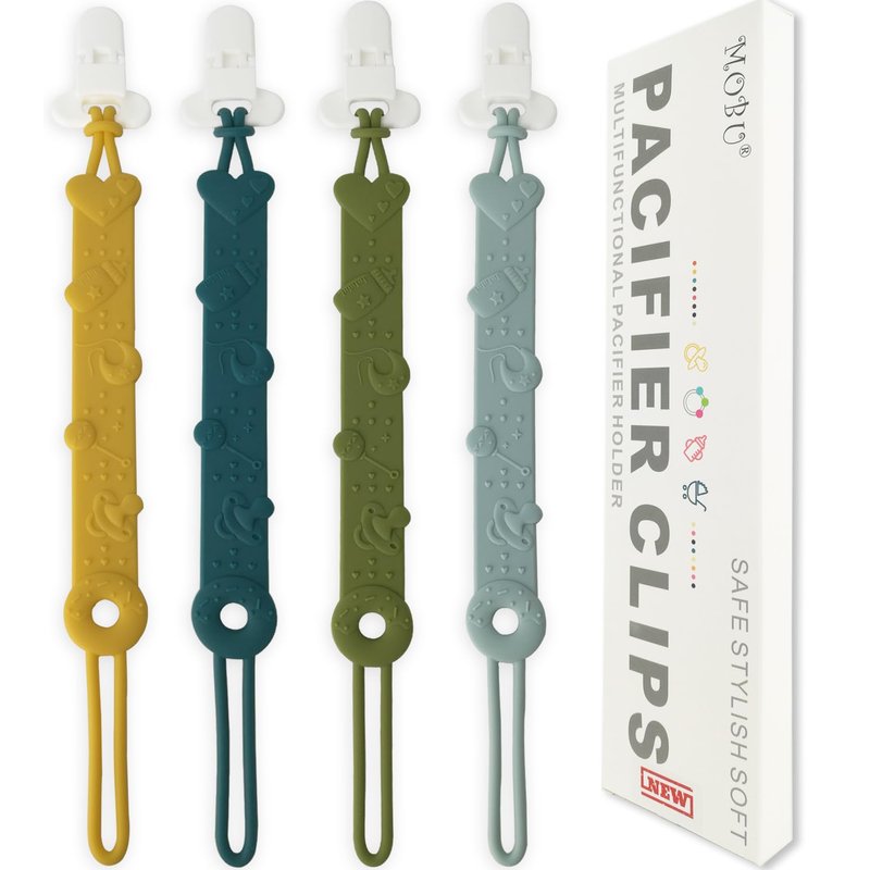 Pacifier Clip MOBU 4 Pack Silicone Pacifier Clips Holder for Baby Boy Girl Newborn Essentials One Piece Design Universal Pacifier Holder Birthday,Shower Gift (4 Colors_Ⅰ)