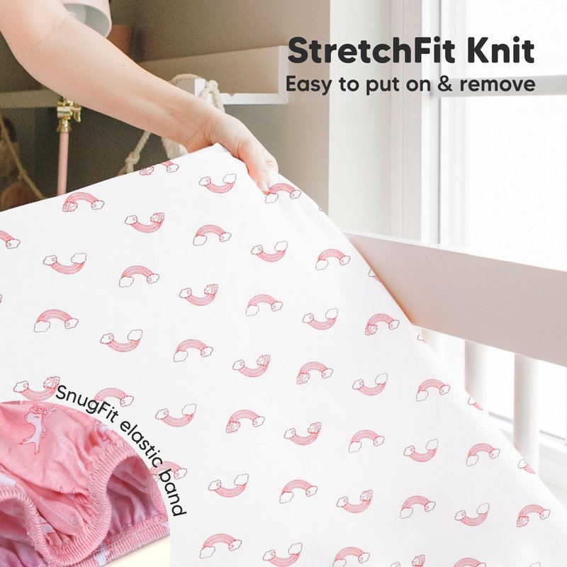 Our Isla Fitted Mini Crib Sheet uses SnugFit Tech, a smart fabric knit that allows the fabric to stretch, for easy fitting and removal of the crib sheet. No more struggling with rigid baby crib sheets.