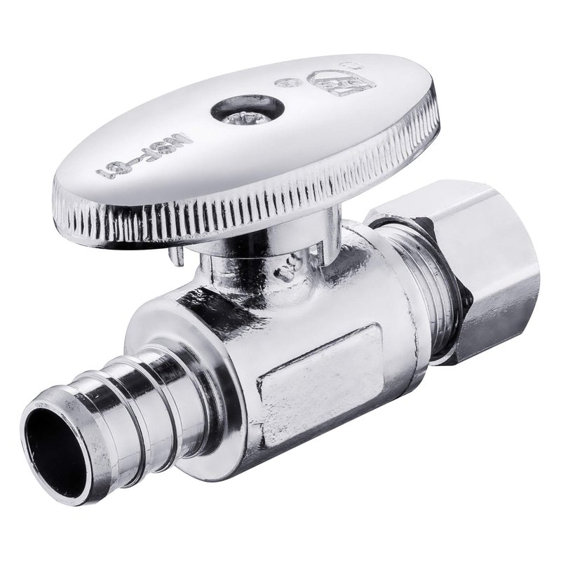 (Pack of 10) EFIELD 1/4 Turn Straight Stop Valve 3/8" OD Compression X 1/2" Crimp Barb Pex Chrome Plated Brass