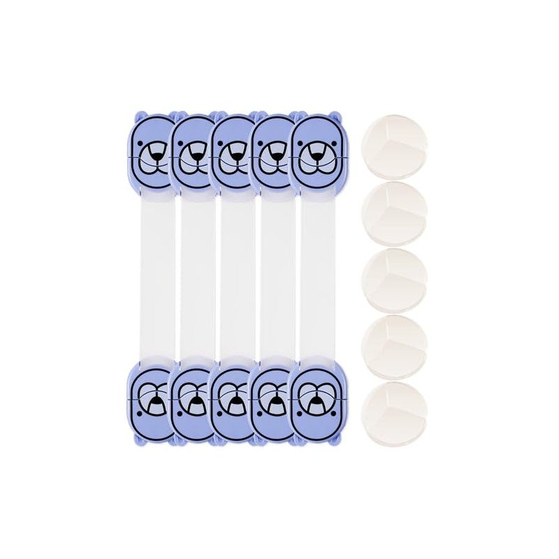 [Pack of 2] 5Pcs Kids Safety Locks w/ 5 Furniture Corner Protectors Drawer Cabinet Strap Locks Baby-Proof Adhesive Fridge Latches Locks
