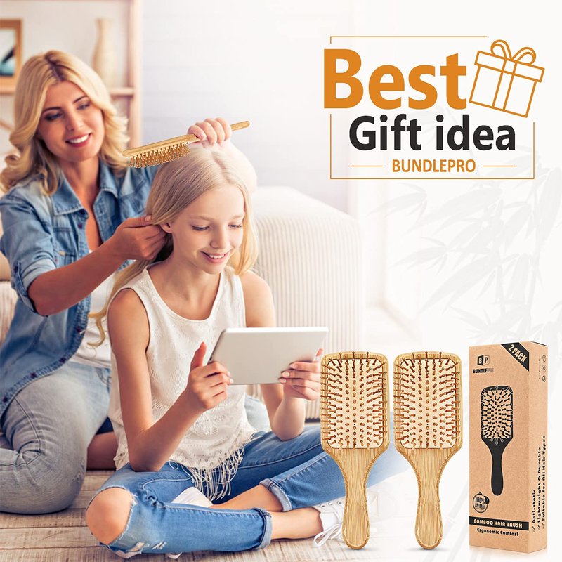 Package include: 2 x Bamboo Hair Brush