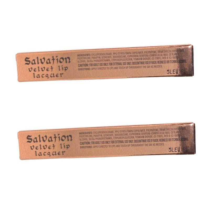 - Pack of 2 Makeup Revolution Beauty Salvation Velvet Lip Lacquer, The One For All This lipstick gives your lips a great look with a highly pigmented color that lasts all day without smudging - even when you eat and drink. The lipstick is based on natural minerals that give the lips a nice and velvety finish. 0.06 fl oz / 2 ml x2 Made in Taiwan