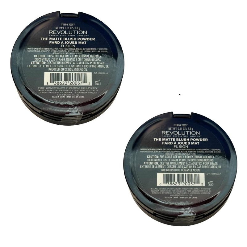 - Pack of 2 Makeup Revolution Beauty The Matte Blush Powder, Fusion Formulated with finely milled pigments, this blush blends seamlessly onto your skin, leaving a smooth and even finish that lasts all day. The matte texture minimizes the appearance of pores and imperfections, giving you a flawless complexion that looks natural and radiant. 0.31 oz / 8.9 g x2