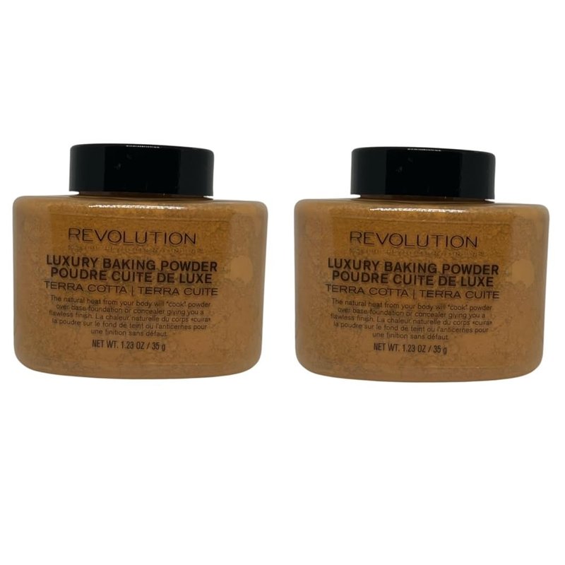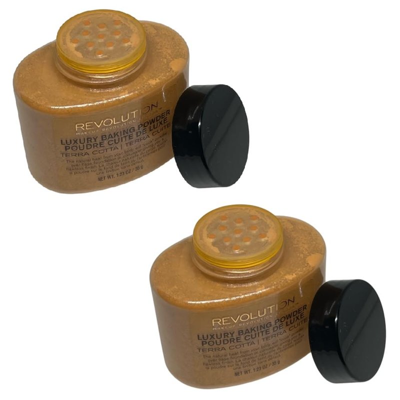 Pack of 2 Makeup Revolution London Luxury Baking Powder, Terra Cotta The natural heat from your body will "cook" powder over base foundation or concealer giving you a flawless finish.
