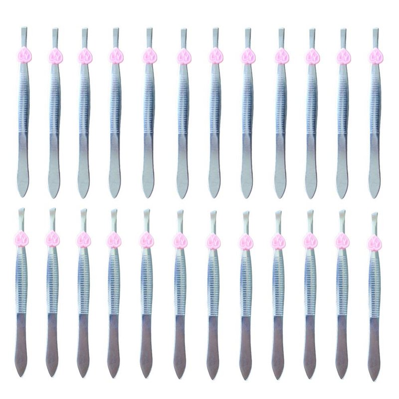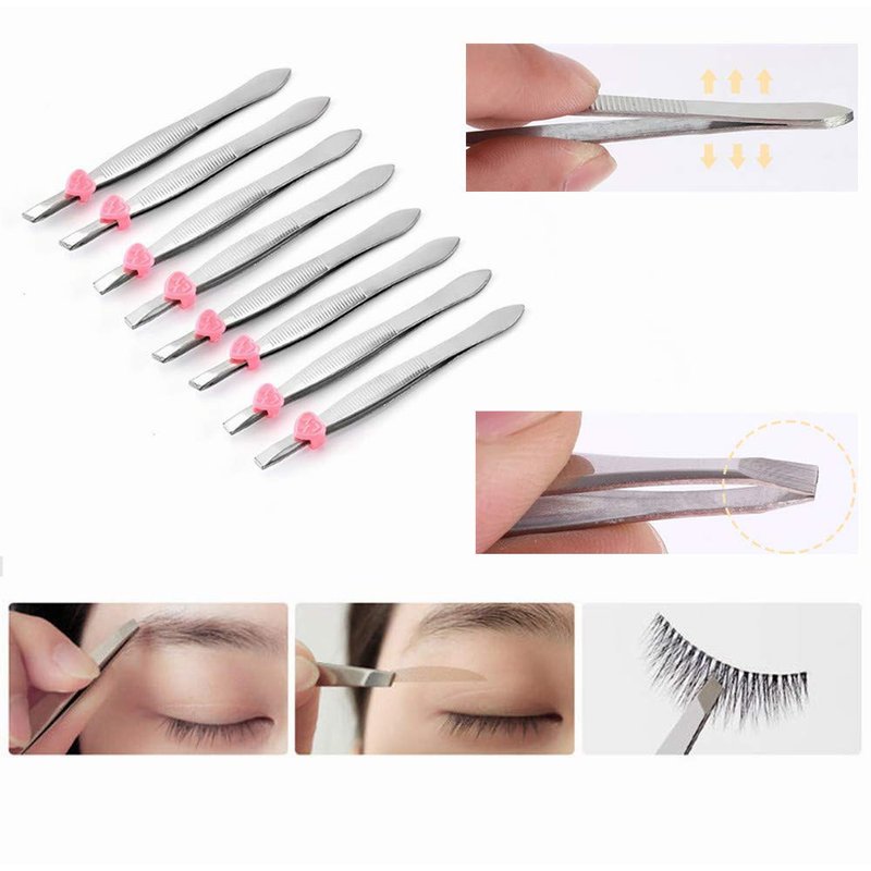 - Packaging Includes: Comes with 12 pcs oblique eyebrow tweezers and 12 pcs flat stainless steel tweezers, totally 24 pcs precision tweezers. Lttle pink heart detail to secure closure on end of Tweezers.