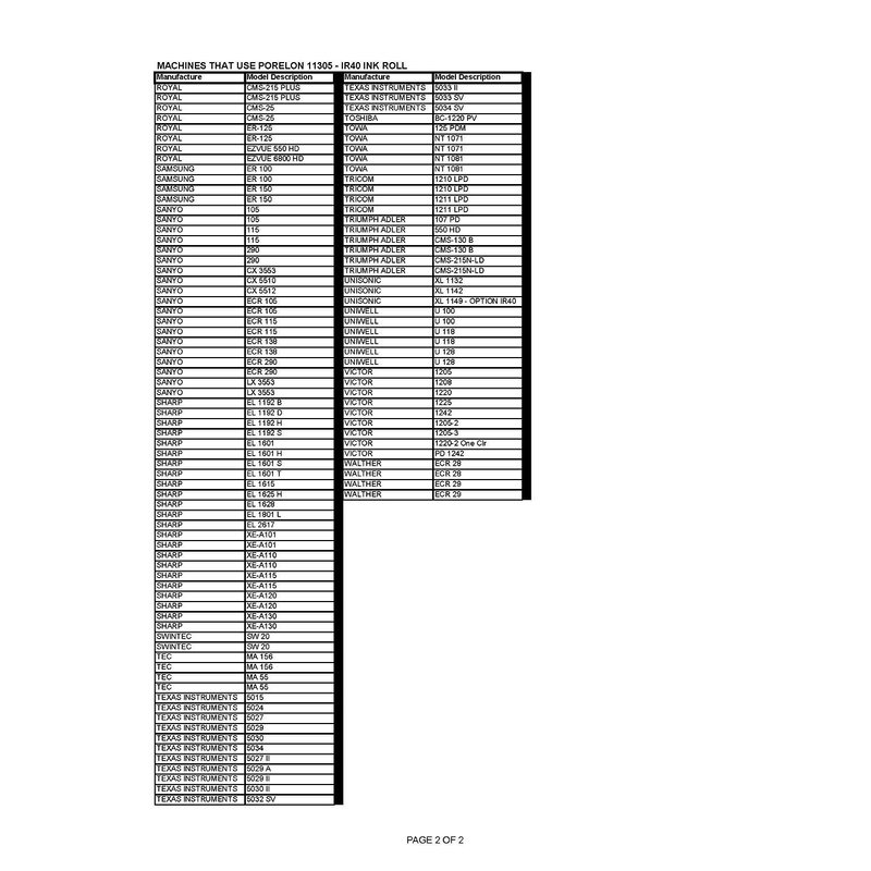 "Package of Six" Sharp XE-A101, XE-A102, XE-A106, XE-A107, XE-A110, XE-A115 and XE-A120 Cash Register Ink Roller, Black, Compatible