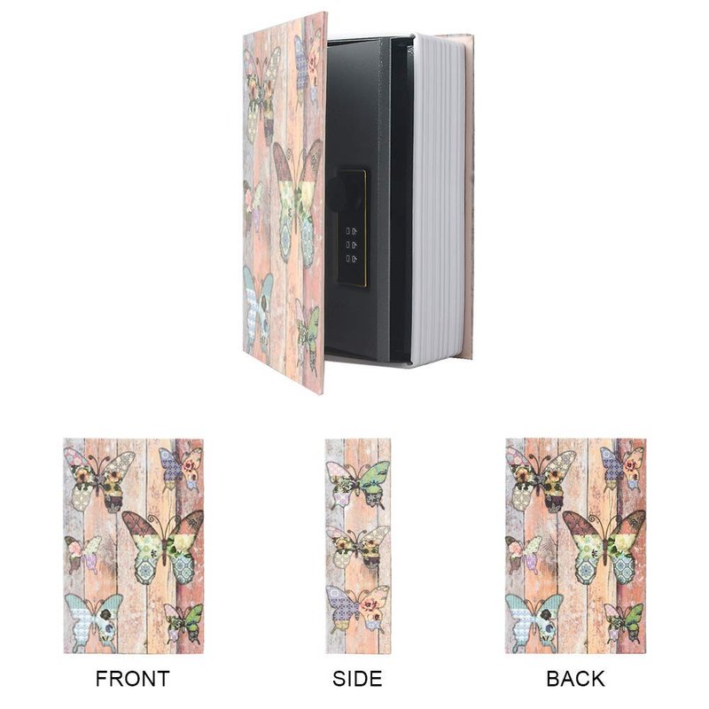 PACOLO Small Diversion Book Safe Storage Box, Metal Can with Security Combination Lock/Key, Hidden Safe (Combination, Butterfly)