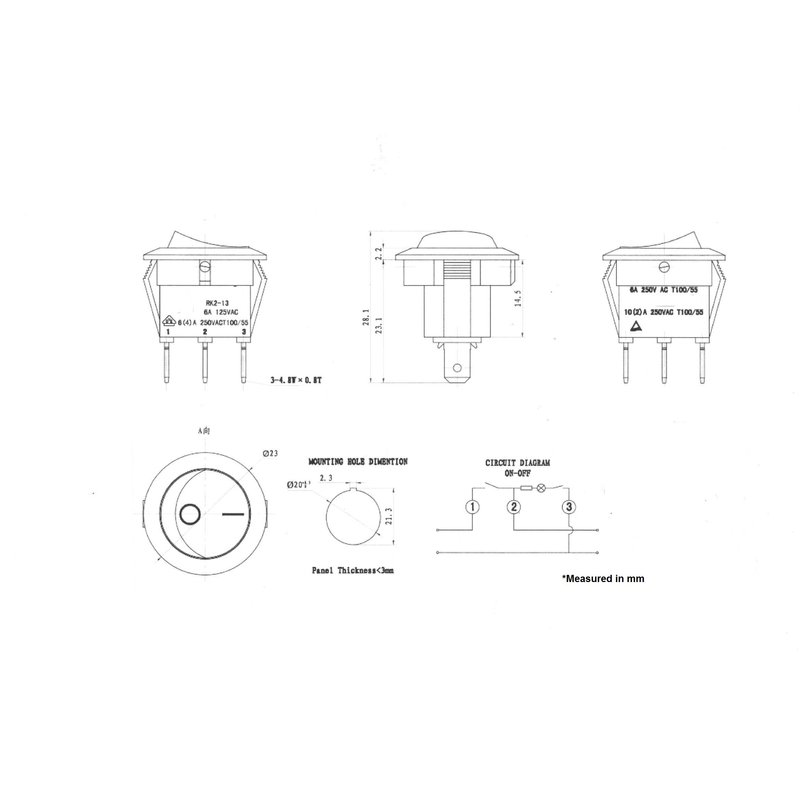 This is a set of five (5) Small Round LED SPST Rocker Switches with a rating of 12 VDC and 20A each. The description below is for one (1) rocker switch. It has an ON-OFF switch, and this switch fits most marine and boat, even cars and trailers! The switch produces light that indicates the power function when it is turned on. This switch is easy to use! Operating Voltage: 12 VDC, Rating: 20A, LED color: Blue, Switch: ON-OFF, Contact R.: 50m? max., Insulation R.: 500 VDC 1000M? min., Dielectric Strength: 1 Minute 1500V AC, Operating Temperature: -25°C~+85°C, Electrical Life: 10,000 Cycles. Check out our store to look at various light colors and different switch! Item Number: PDSA0076BX5