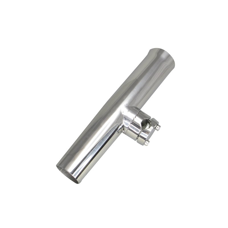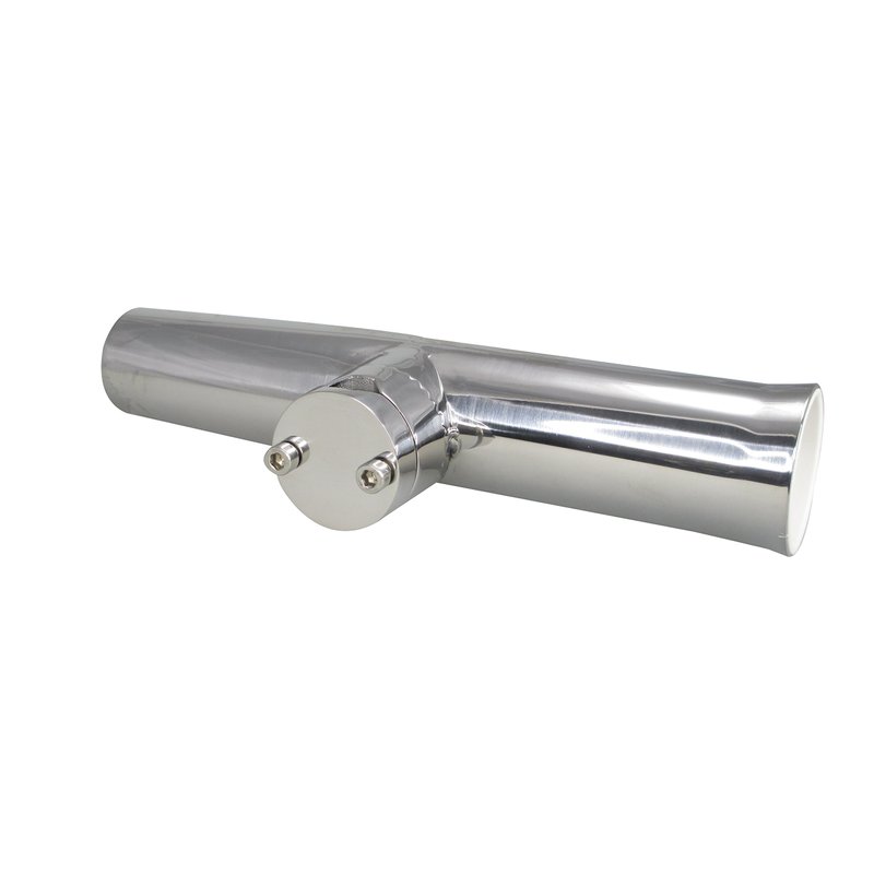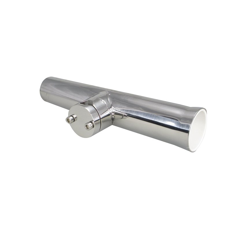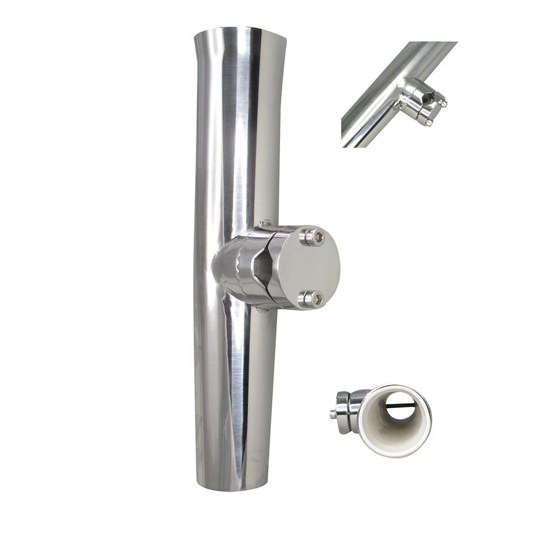 This is a stainless steel 316 Tournament Style clamp-on rod holder. This is a high quality stainless steel rod holder with a clamp-on feature. It has a white plastic-tipped end and interior that protects your rod. This polished holder, 1 3/4" diameter, has tough stainless steel for corrosion resistance and durability. Hardware not included for this item. Check out our store to find out different sizes and various types of rod holders. stopper slot built into the base of the rod holder to located the rod butt into position. Can be mounted to vertical or horizontal rails - adjustable for rails 22mm (7/8") to 25mm (1") diam. Rod holder can be adjusted to 32 different angles when mounted; easy to install, mounting bracket includes bolts (allen key not included). We also carry different colors for some of our rod holders, be sure to consult us if you have any question Dimensions: 10 1/4" (height) x 4 1/2" (length with clamp), diameter: 1 3/4". Item# P54087-01 X 4