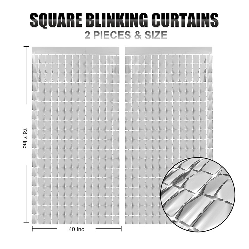 - PACKAGE INCLUDED: 2Pcs square party photo backdrop - Each silver foil curtains size is 3.3ft x 6.6ft(about 100cm x 200cm), enough length for decorate your party.