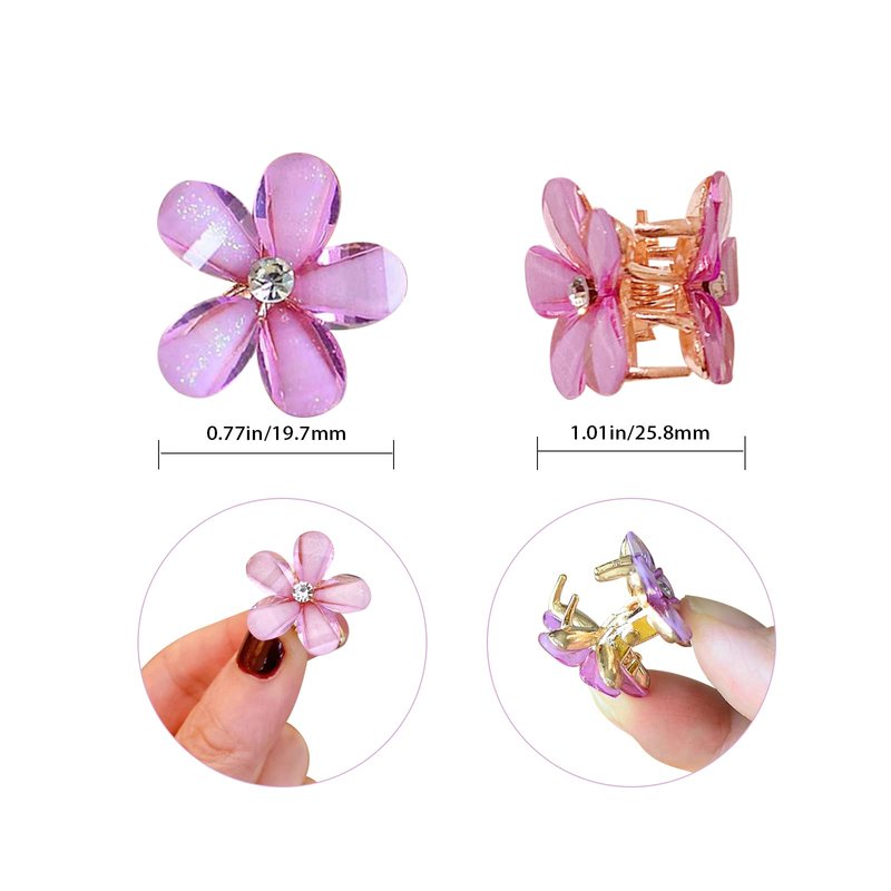 Mini flower hair clips have great quality. Each petal of the flower is made with crystal pearls, which are firmly fixed and not easy to fall off. These tiny clips can fix your hair well and make you more attractive.They are not only embellishes your hair but also achieves a graceful and sweet temperament. You will be elegant and attractive from the crowds. Hair claw clips are the perfect hairstyle accessory for most occasions and always ensuring your beauty. You can use they and keep your hair clean and tidy. As a shooting props is also a good choice.Give it to your daughter as a gift, she will be very happy.Mini flower hair clips have great quality. Each petal of the flower is made with crystal pearls, which are firmly fixed and not easy to fall off. These tiny clips can fix your hair well and make you more attractive.They are not only embellishes your hair but also achieves a graceful and sweet temperament. You will be elegant and attractive from the crowds. Hair claw clips are the perfect hairstyle accessory for most occasions and always ensuring your beauty. You can use they and keep your hair clean and tidy. As a shooting props is also a good choice.