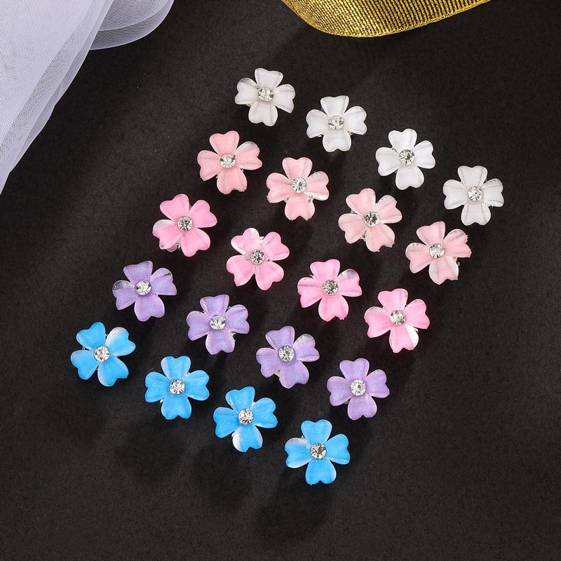 Paderison 20Pcs Small Flower Hair Clips for Girls Clover Mini Hair Clips with Rhinestone Wedding Bridal Hair Pins Cute Hair Barrettes Flower Hair Accessories for Women Hair Gems Decorative