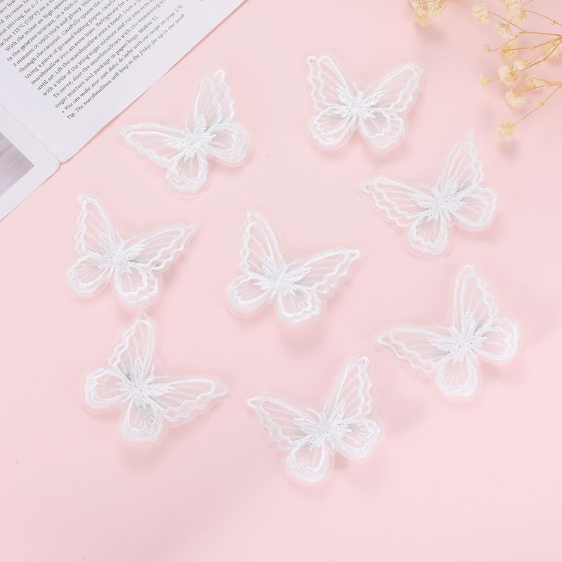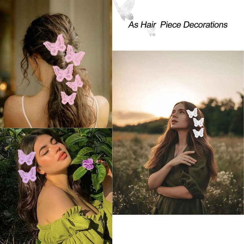 - Butterfly Hair Clips: Our Butterfly Hair Clip Set is a lace embroidered chiffon butterfly hair clip design. The first layer of the butterfly is a small embroidered butterfly, plus two layers of stacked lace butterflies to give the butterfly hair clips a sweet and fairy look. The edges of the lace butterfly hair clip are also treated with multiple layers of locking, which protects the lace butterfly and also clearly outlines the butterfly style. The double lace butterfly hair clips have a line outline of the butterfly's texture, making the butterfly hair clips even more lifelike.