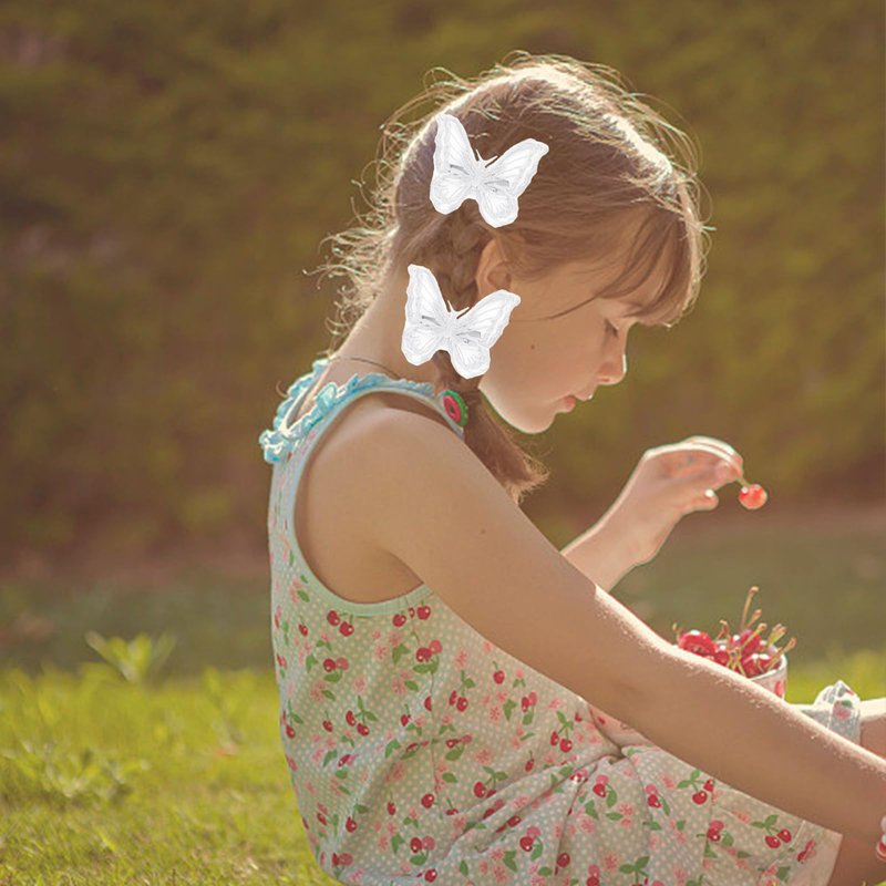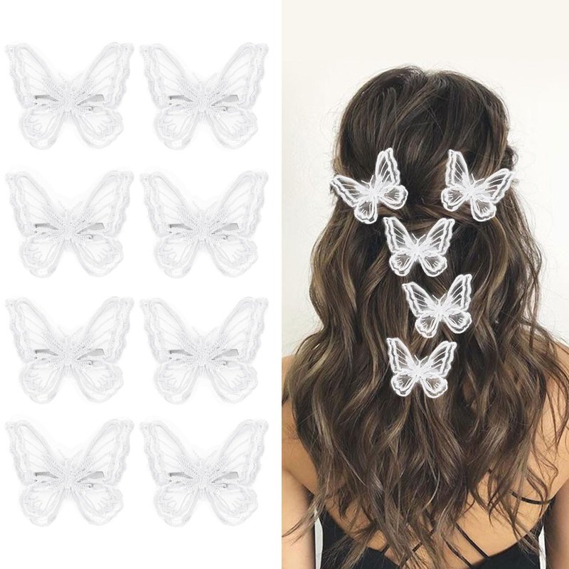 - Butterfly Hair Accessories: This butterfly hair clip set contains 8 hair clips measuring 2.36 inches.Cute size can be used to decorate hair braids, deal with broken hair, fix bangs. Butterfly hair clips can not only decorate your hair but also have great usability. Whether you have short hair, long hair, thick hair, thin hair, curly hair, straight hair, you can use it to decorate your hair when styling. Butterfly hair clips can be sweet side clips, decorative coiffure or twisted braids have very beautiful.