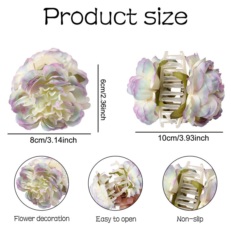- Perfect Size : The size of the flower hair clips is 3.93*3.14*2.36 inches. These cute hair clips are suitable for all kinds of hairstyles and places. No matter you have short hair, long hair, thick hair, thin hair, curly hair, straight hair, you can use it to decorate your hair when styling. Plastic scrunchies can hold all your hair well, half updo and full updo, or decorate updo.