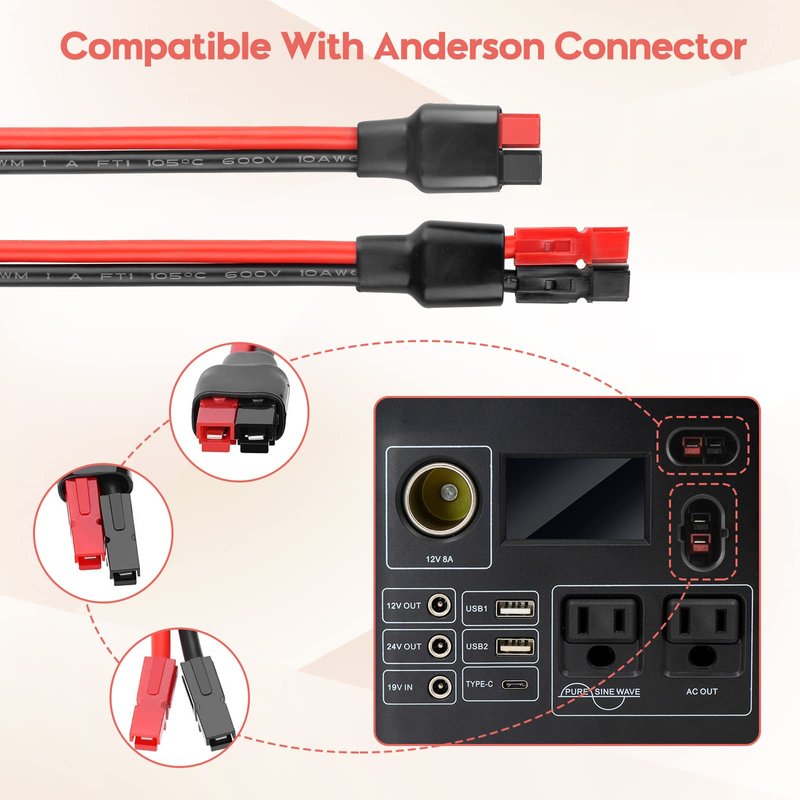 - What You Get: 1 X 10AWG Solar panel extension cable compatible with solar panel to anderson connector. 7*24 hours Free Technical Support Service. If you have any questions about this solar connector kit, please feel free to contact us. Our costumer service team always be there for you.
