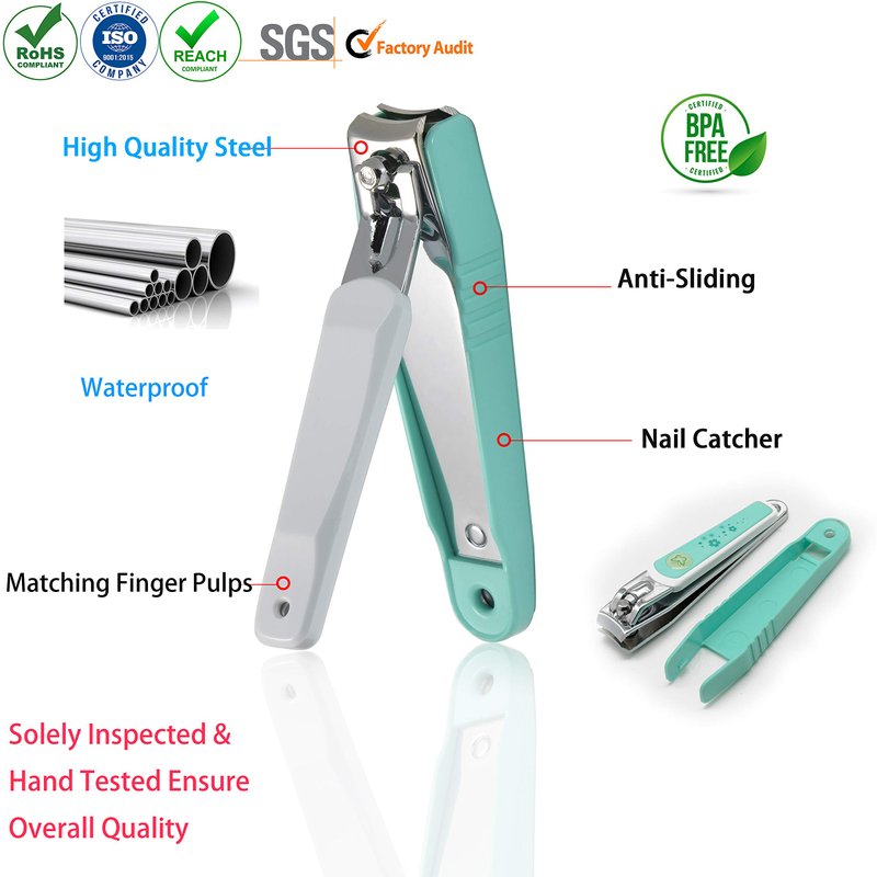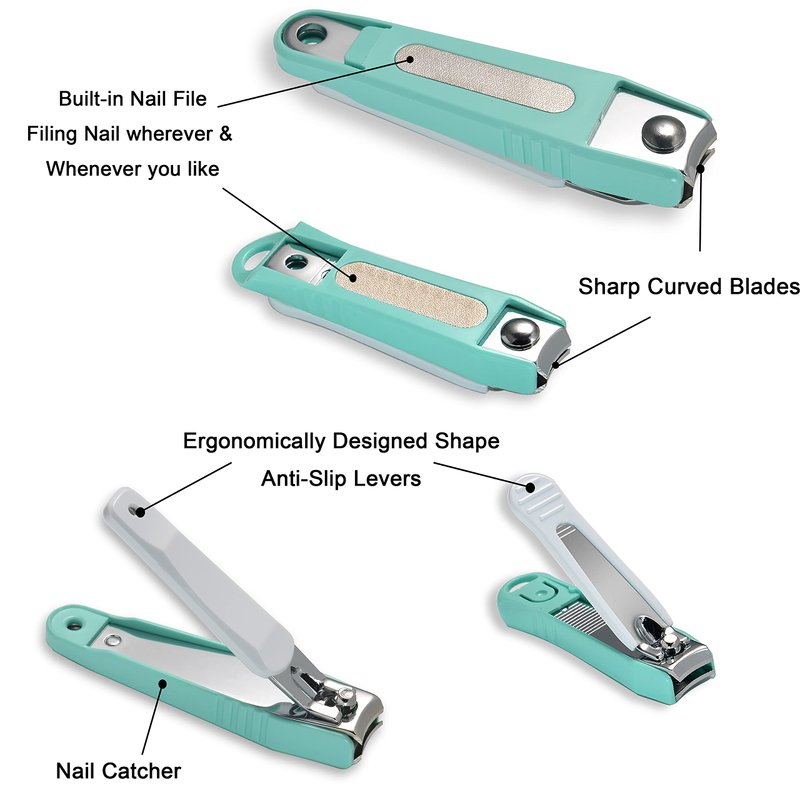- Nail Catcher: both fingernail clipper and toenail clipper come with nail catcher that collects nail fragments after clipping. So there won't be any nail fragments hiding in the corner of furniture or on the floor, which need to be clean or vacuum.