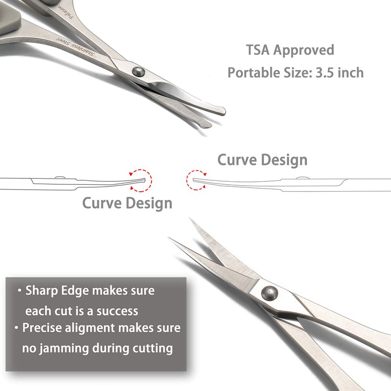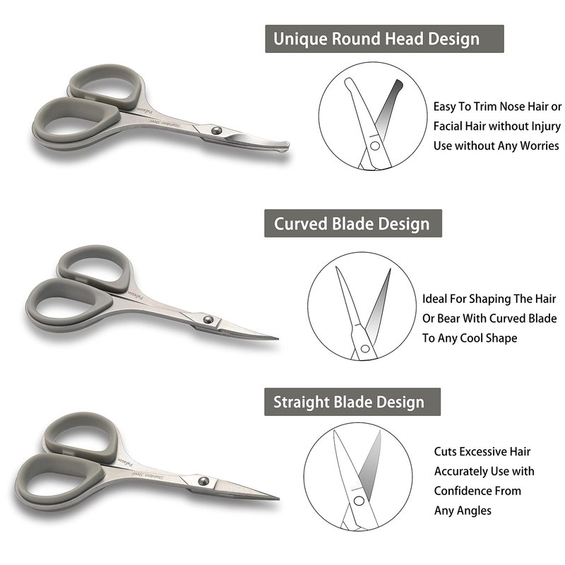 - Personal care scissors - The facial hair scissors set/ kit is ideal for removing nose hair, mustaches, beards, ear hair,eyebrows, eyelashes, dead skin and baby’s fingernails. Suitable for both women and men. Protective cover prevents dust and keep clean and safe after used.