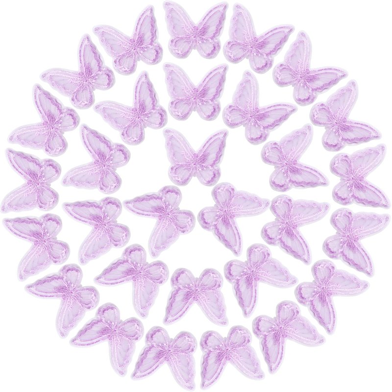 PAGOW 30pcs Butterfly Lace Trim, Double Layers Organza Fabric Embroidery Sewing Craft Decor Applique Patches for Wedding Bride Hair Accessories Dress Decoration (Purple)