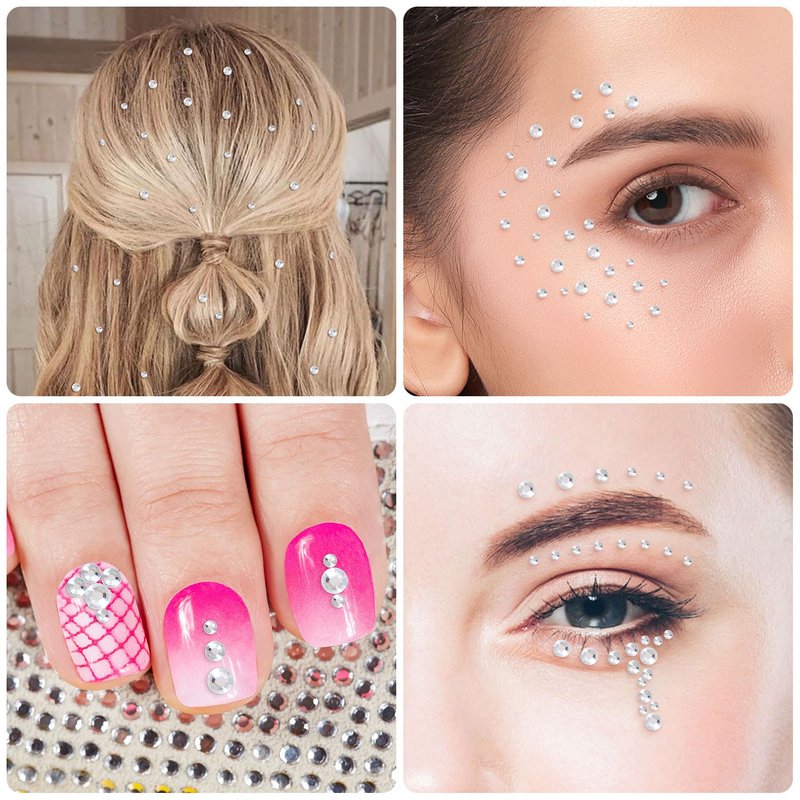 Well Made:These gems stickers are rhinestones made of high quality acrylic with a smooth, sparkling surface, and they shines like real jewelry. They stick well, just stick these fake body gems on nose, eyes, eyebrows, lips, hair, face, belly or anywhere you want, they are easy to use.