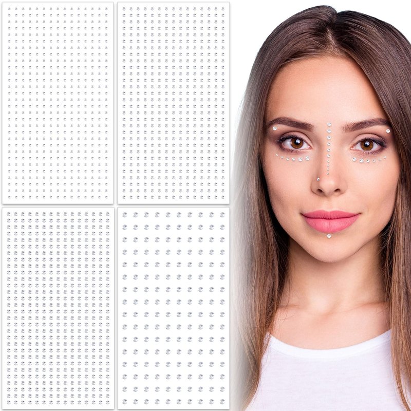 - Package Included: 4 Sheets (640pcs) rhinestones stickers for fake nose stud/ring, fake lip stud/ring, fake eyebrow piercing/stud, fake face piercing, fake belly piercing, etc. These face gems are enough for your daily needs, you can also share them with friends.