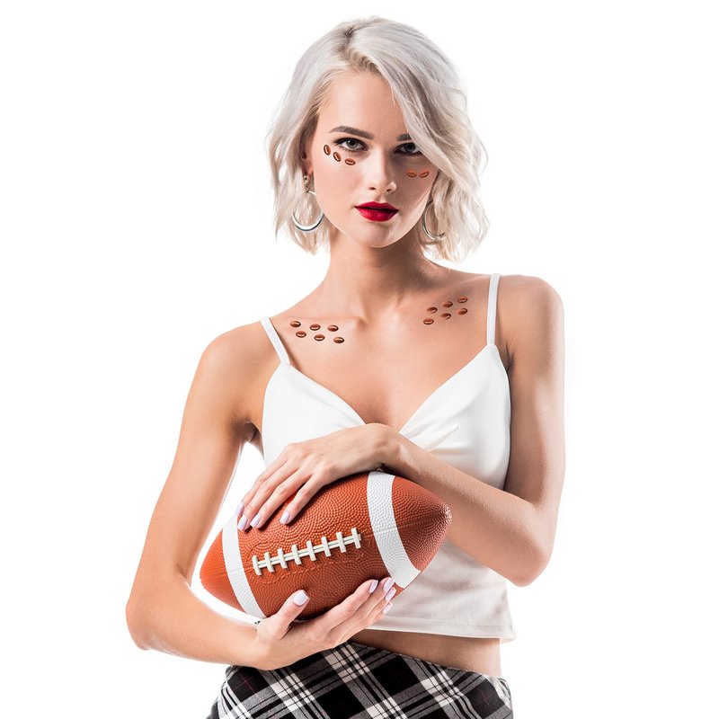 - 【Package list】1 50g 6*10mm brown rugby glitter sequins. Look great wherever you go! NOTE: You will need glitter gel or body glue.