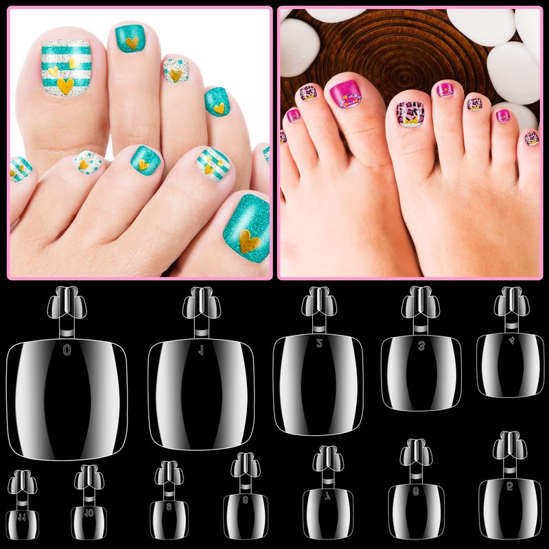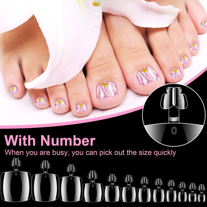 - 【Package Included】600pcs 12 different sizes of false toenail tips are sturdy, thick and have a long lifespan. Easy to file and form, flexible but not cracking.