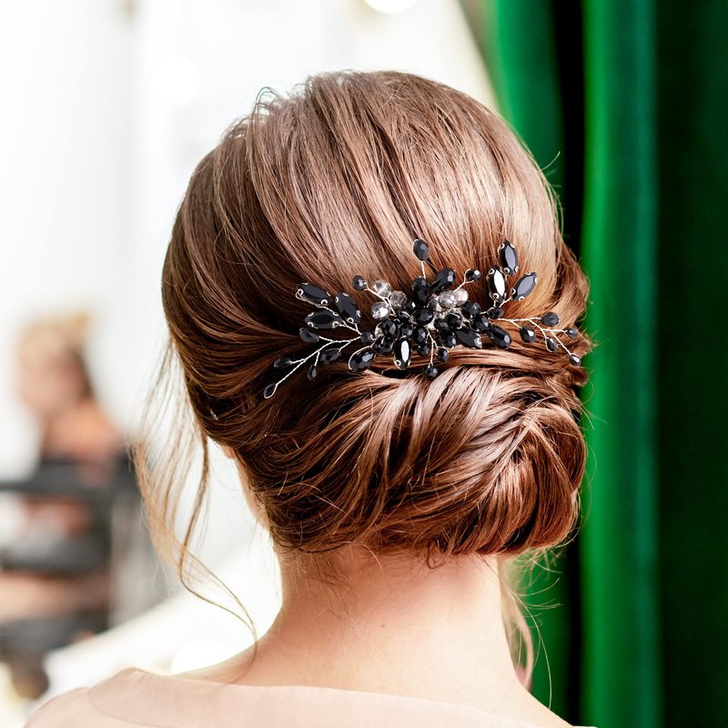 - Nice Material: The onyx rhinestone hair comb is made from rhinestones and crystals,which is braided all together with alloy wire,and it is not easy to fade and break, easy to fix in hair. Flexible design is very comfortable to wear.