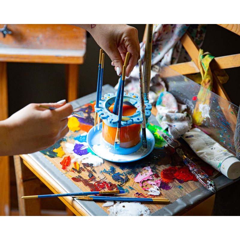 Paint Brush Cleaner Rinse Cup (All-in-One) Fine Art, Studio, Classroom | Brushes Holder & Silicone Cleaning System for Acrylic, Watercolor, and Water-Based Mediums (Mug, Blue)