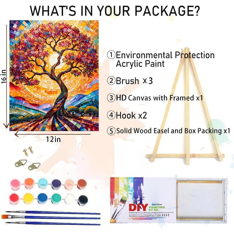 - Framed Paint by Number Kit Includes:This framed adults' paint-by-number kits has a complete tool includes a high-quality 12 x 16 inch cotton canvas with a wooden frame, The framed paint by number kits for adult includes 1 canvas with frame, 3 brushes, and a set of high-quality pigments. It also includes standard hanging hook accessories and a easel kit.