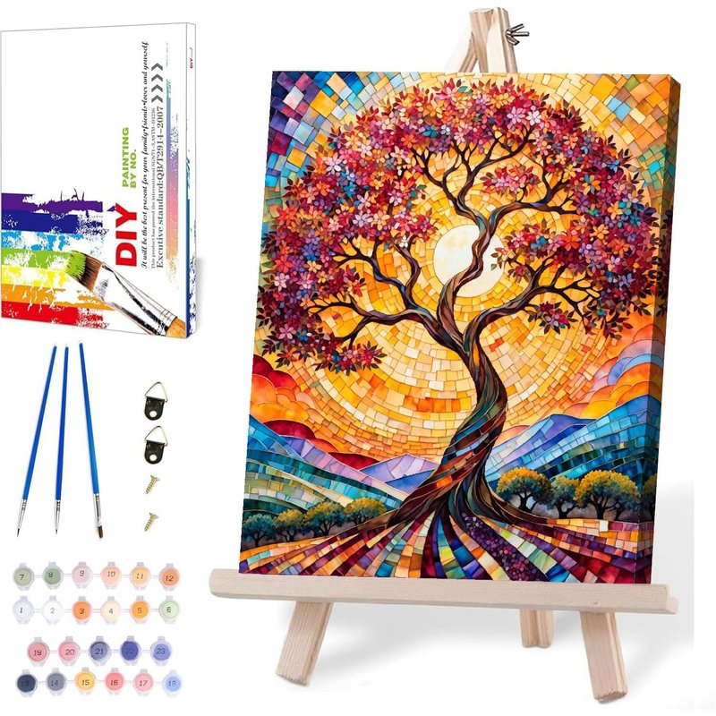 Paint by Numbers Kit for Adults with Frame - with Wooden Easel, Framed Adults Paint by Number Kits Canvas DIY Acrylic Paint by Number Kits on Canvas with Easel Oil Painting Arts Crafts 12x16inch
